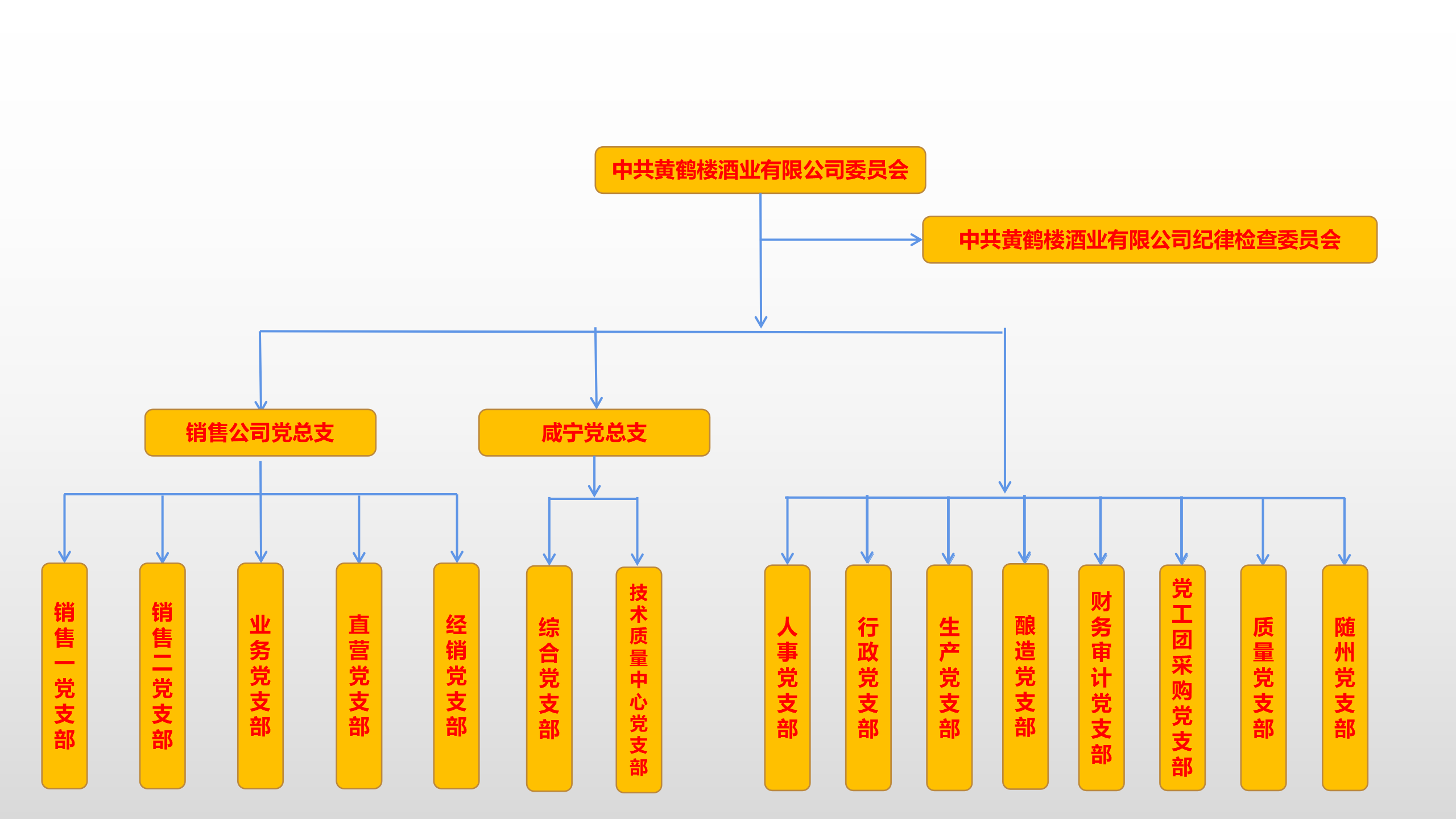 黃鶴樓酒業黨委于2010年3月成立,現有黨員200余人,黨委委員有7人,下設2個黨總支和15個黨支部。