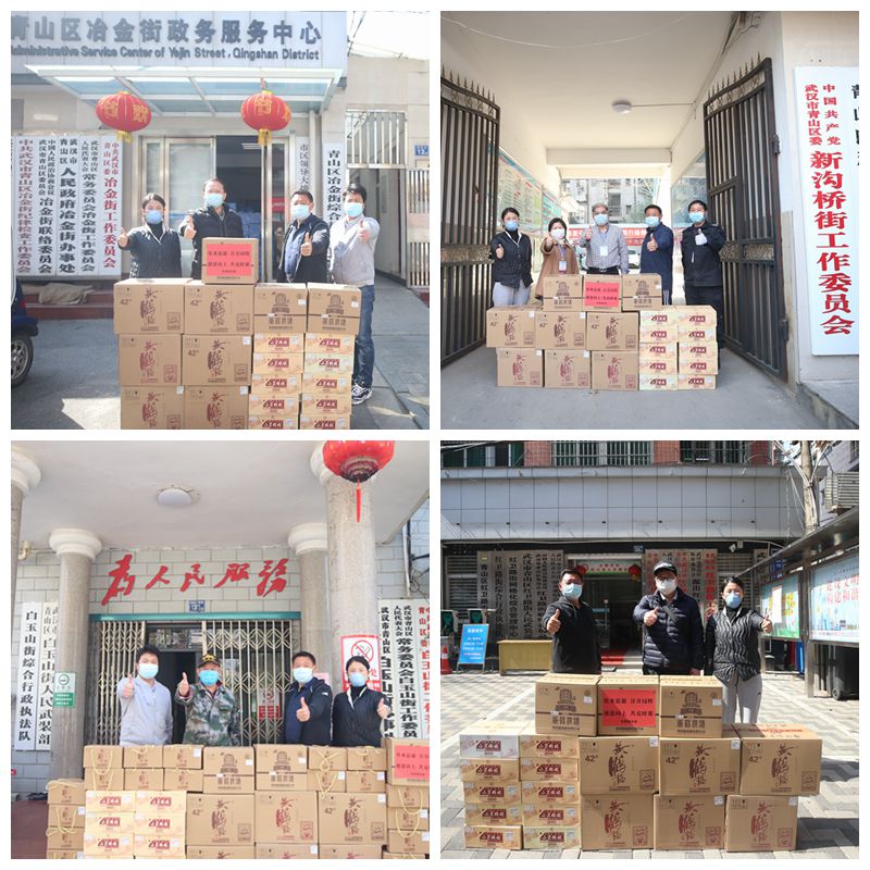 3月17日,黃鶴樓酒業志愿者服務隊前往青山區白玉山街、新溝橋街、冶金街及紅衛街辦事處開展慰問,共送去了1800個口罩和近15萬元的防疫物資。公司行政服務中心總監助理陳朝陽參與慰問。