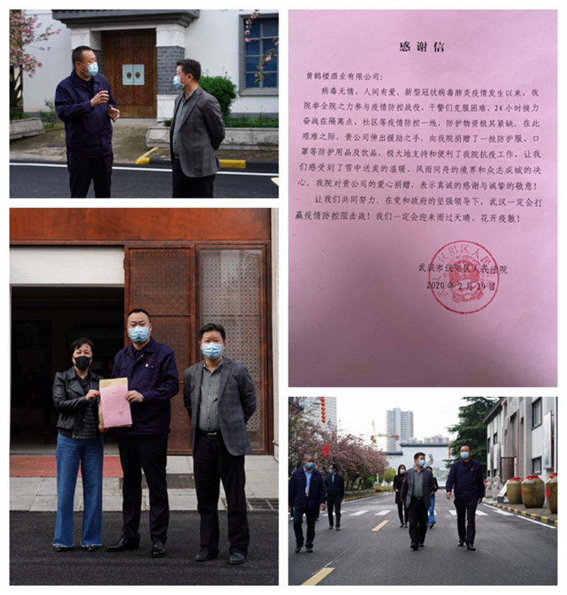 3月25日,武漢市漢陽區人民法院到黃鶴樓酒業調研復工復產情況,并對黃鶴樓酒業疫情期間的支援表示感謝。漢陽區人民法院黨組書記、院長殷磊、黨組成員、副院長李樂參加調研,黃鶴樓酒業黨委書記、董事長許鵬陪同調研。