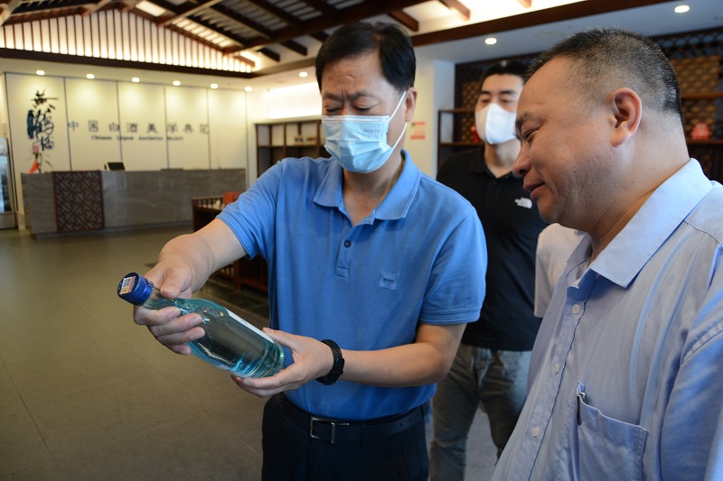 7月3日,湖北省文化和旅游廳黨組成員、副廳長陶宏家一行調(diào)研黃鶴樓森林美酒小鎮(zhèn),咸寧市文化和旅游局黨組書記、局長李振,黨組成員、副局長阮勁松陪同調(diào)研,黃鶴樓酒業(yè)酒體設(shè)計(jì)總工程師李久洪,釀造管理中心總監(jiān)助理史健接待來訪。