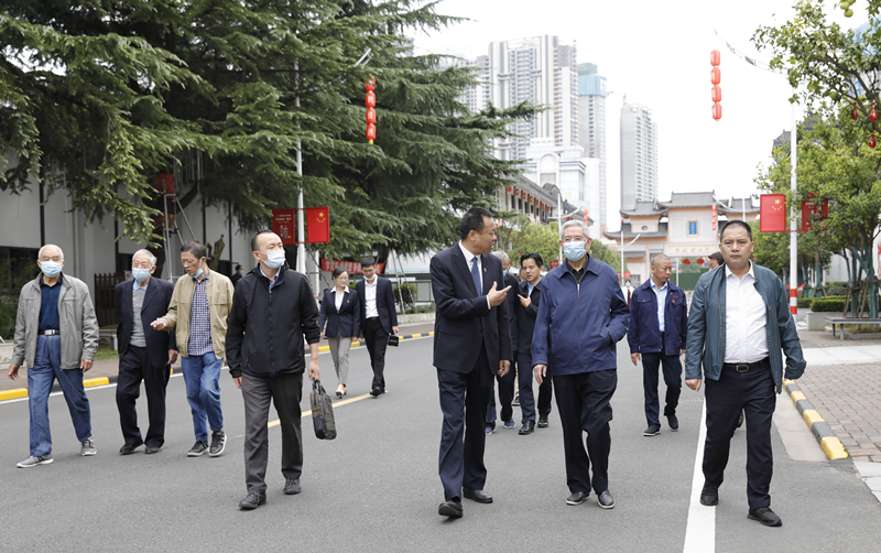 10月13日,在重陽節即將來臨之際,武漢市人大常委會原主任趙零、市政協原主席葉金生,市委組織部原部長虞成恩、市政協原副主席吳一民,湖北省委巡視組原副組長宋遠駱、市委組織部原副部長王世鏵、市委組織部原副部長、市直機關工委原書記沈學發、市委組織部原副部長、市人大城建委員會原主任開遠榮、市委組織部原副部長、市委老干局原局長胡先強一行到黃鶴樓酒業調研,漢陽區委書記徐麗,區委常委、組織部部長陳革鴻陪同調研,黃鶴樓酒業黨委書記、董事長許鵬,黨委副書記、總經理朱向紅,黨委委員、副總經理魏國參加調研。