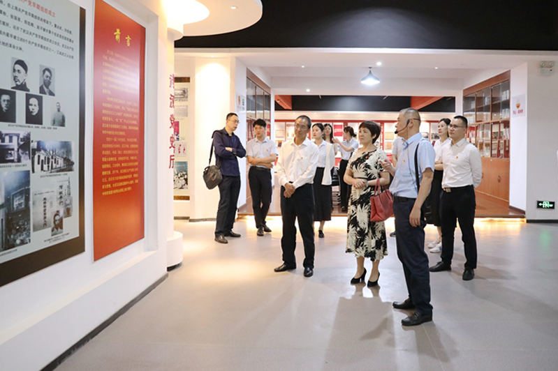 在黨建文化館,周佳玲帶領機關黨委黨員同志,面向黨旗莊嚴宣誓,并回顧了黨的百年光輝歷程以及武漢紅色革命史。張瑞詳細介紹了公司黨建工作開展情況,他表示,黃鶴樓酒業在公司黨委班子的堅強領導下,不斷創新黨建工作,以黨建助力生產經營,以品牌建設推動企業高質量發展,未來,希望與中南財經政法大學繼續加強交流合作,雙方情誼越走越深。