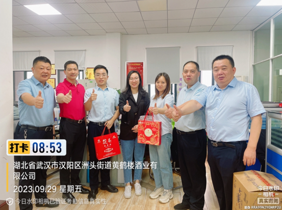 9月29日,正值中秋佳節(jié),黃鶴樓酒業(yè)黨委副書記、總經(jīng)理朱向紅,黨委委員、副總經(jīng)理王超一行走訪了商超、酒店、促銷、業(yè)務(wù)、財(cái)務(wù)部等多個(gè)部門,慰問(wèn)仍?shī)^戰(zhàn)在一線的前后臺(tái)營(yíng)銷將士們。