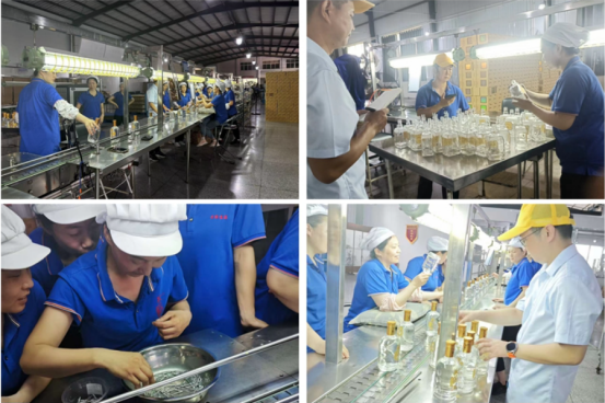 競賽現(xiàn)場,參賽選手分別在“火眼金睛-驗(yàn)酒比拼”“心靈手巧-鉚釘分類”“質(zhì)檢能手-酒瓶缺陷識(shí)別”三個(gè)項(xiàng)目上比拼操作技能,車間管理人員擔(dān)任裁判和記錄員,現(xiàn)場氛圍熱烈,緊張有序,經(jīng)過激烈的角逐,共產(chǎn)生優(yōu)勝人員11人。
