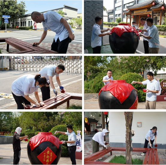 刷漆活動(dòng)中,大家不懼高溫、不畏酷暑,對(duì)廠區(qū)內(nèi)景觀凳、景觀酒壇等進(jìn)行打磨刷漆、翻新維護(hù),想在前、做在前、干在前,深刻踐行公司“三個(gè)人人”行為理念。