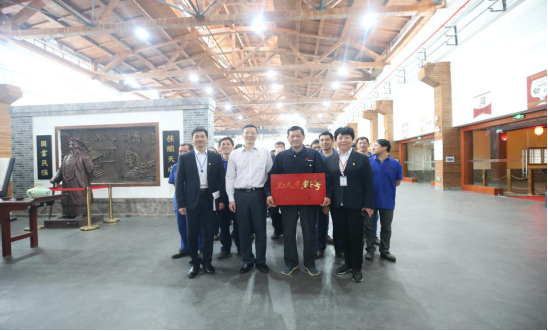 4月26日,湖北省經貿工會主任周溢一行工會領導到黃鶴樓酒業參觀并為武漢釀酒車間授牌。