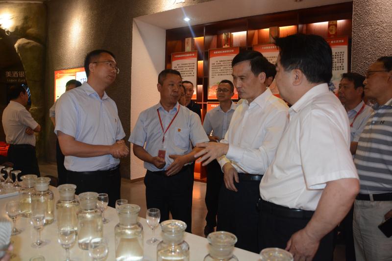5月28日,武漢市政協主席、黨組書記胡曙光一行參觀調研黃鶴樓森林美酒小鎮,咸寧市政協主席、黨組書記曾國平陪同調研,黃鶴樓酒業總經理助理魏國接待來訪。