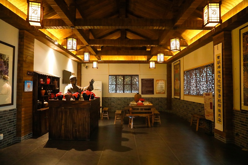 天成坊釀造車間起源于張之洞獻(xiàn)酒,光緒帝御賜名為“天成坊”,寓意佳釀天成,國富民強(qiáng)。在天成坊釀造車間,游客能親身領(lǐng)略名酒生產(chǎn)、窖池發(fā)酵的全過程,品嘗原糧在地缸中經(jīng)時間沉淀長期發(fā)酵后釀造的原酒。