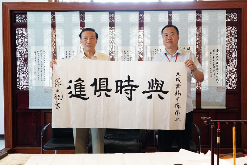在黃鶴樓酒文化博物館,陳士能一行了解楚酒源流,感受楚文化魅力,并現(xiàn)場揮毫潑墨,贈(zèng)與黃鶴樓酒業(yè)“與時(shí)俱進(jìn)”四字勉勵(lì),祝愿黃鶴樓酒業(yè)重振偉業(yè)。